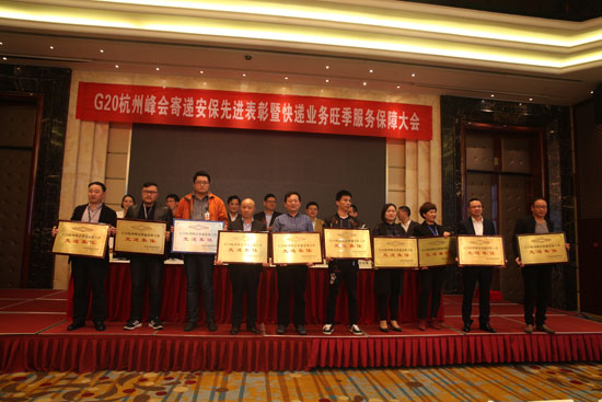 2016年10月31日下午14時,“G20杭州峰會寄遞安保先進(jìn)表彰暨2016快遞旺季服務(wù)保障工作會議”在杭州天元大廈召開,杭州市綜治、公安、國安、郵政管理局等相關(guān)部門出席會議并講話,圓通速遞等快遞企業(yè)相關(guān)負(fù)責(zé)人及代表參加了會議。會議布置了2016年杭州市快遞旺季服務(wù)保障工作并隆重表彰了G20杭州峰會寄遞安保先進(jìn)集體和先進(jìn)個人,圓通速遞浙江省區(qū)、下屬3家加盟公司及17名員工分別受到表彰。